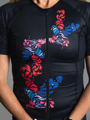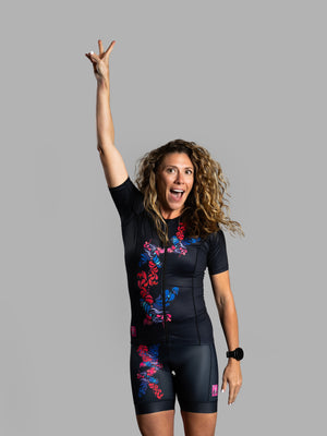 Black Flower Short Sleeve Triathlon Top