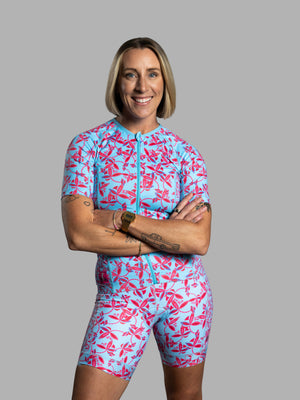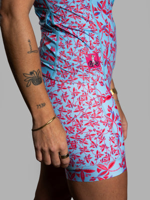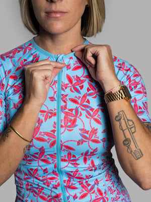 Blue Flower Short Sleeve Triathlon Top