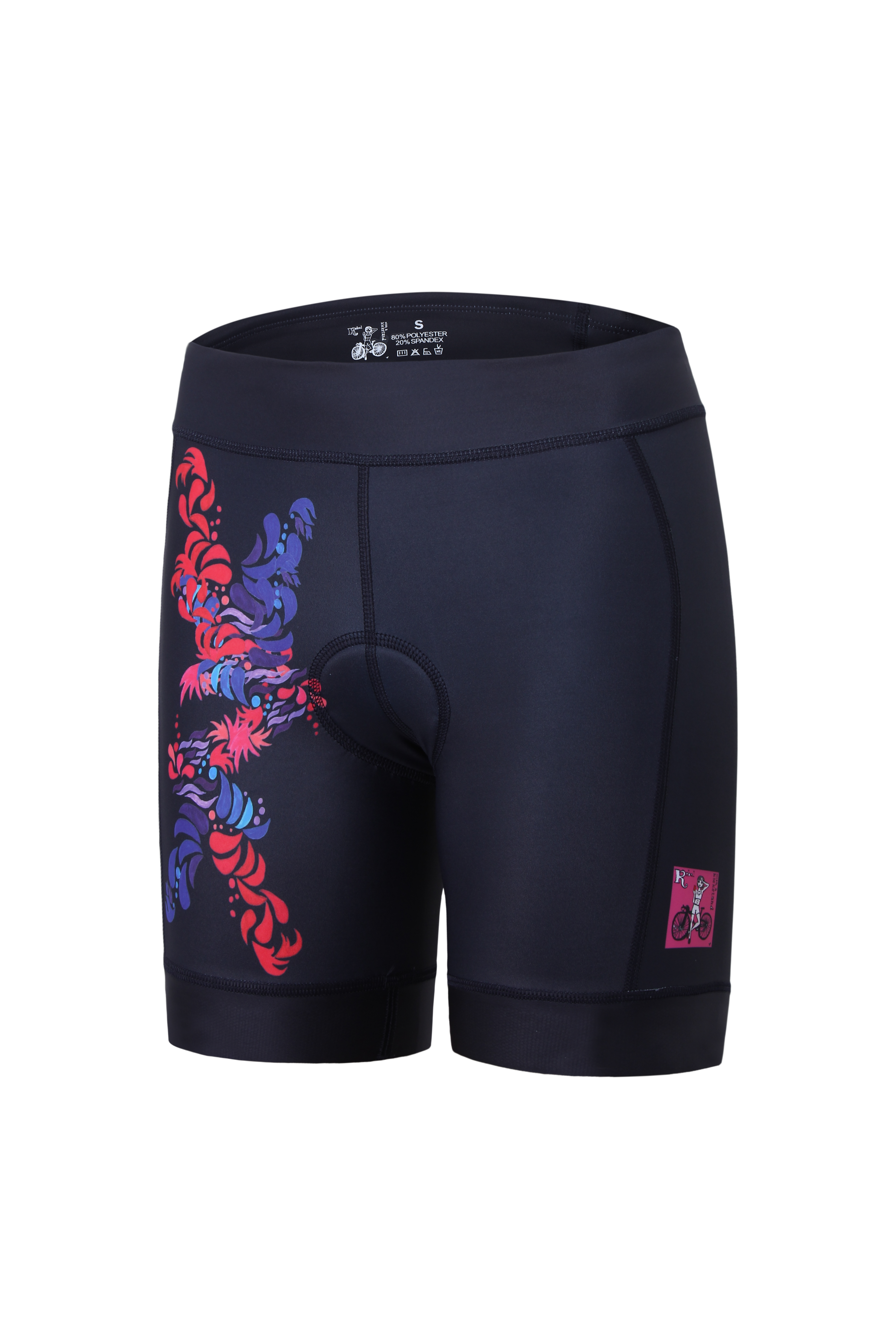When it comes to our Tri shorts, It's ALL about the pad. Far too often, the pad in women's cycling and triathlon shorts are not designed specifically for women but are instead just a slightly altered version of the same pad in men's shorts. The Rebel chamois pad is not a shrunken version of a man's pad but is a pad that was designed by women to be fitted specifically for women's anatomy. The short leg also was tailored NOT as a shrunken version of a men's short but for a women's physique. The gripper band is wide enough to stay put but doesnt dig in so theres no sacrifice of form for function. the fabric will wick, dry and maintain its integrity on the longest, hottest rides. These shorts are your best companion whether you are riding around town or are settling into the bike leg of an Ironman.